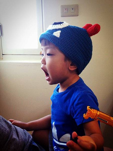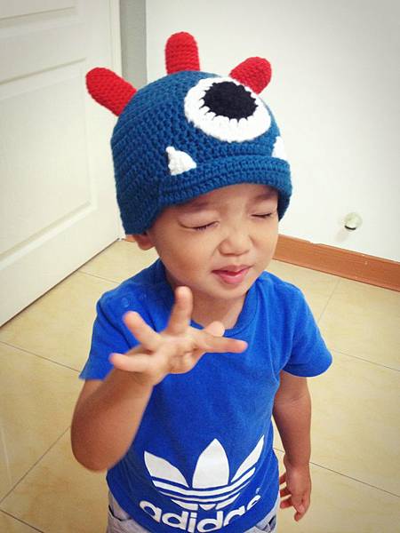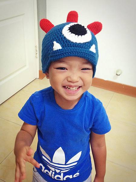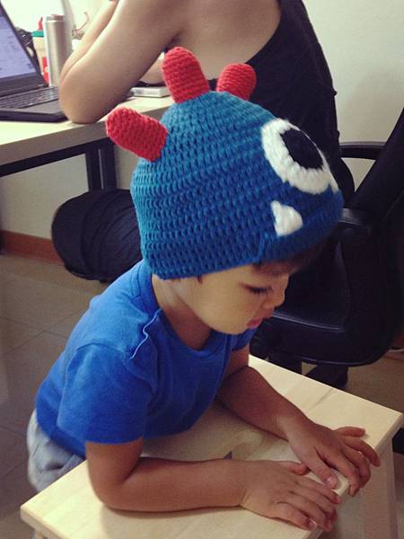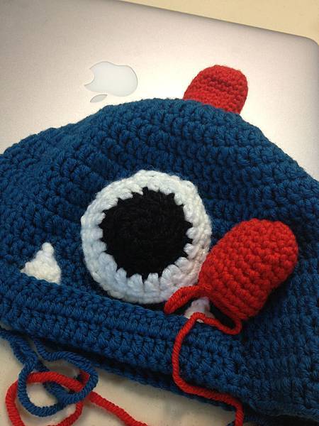 帽身及大眼的部份,我採用中長真的方式編織,頭頂上怪獸角的部分,則使用短針的方式編織