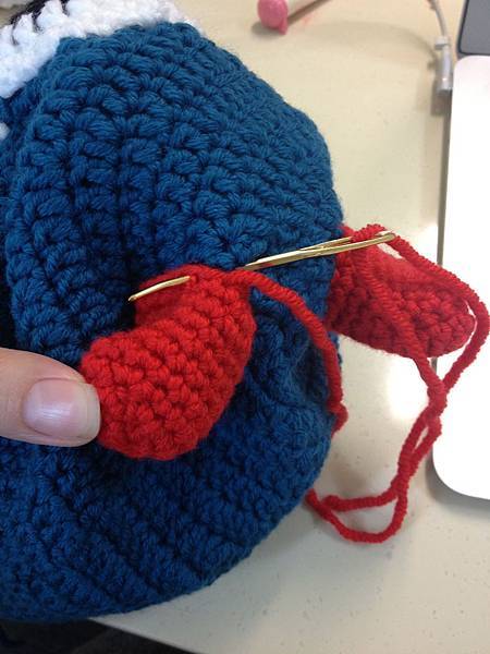 最後再將所有的配件利用毛線專用的縫合針將他們一一組合。