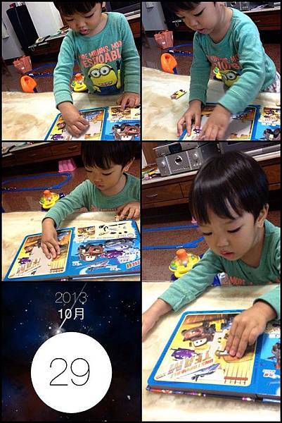 這時期的男孩好愛車子,Chris除了模型車外,也愛拚積木,但拚來拚去不外乎就是鐵軌、山洞還有房子,最喜歡的就是建築機械,也因為跟他爸爸的喜好相同,所以只要讓他停留在一堆建築機械中,就可以玩好久好久~