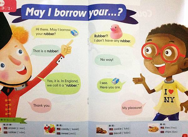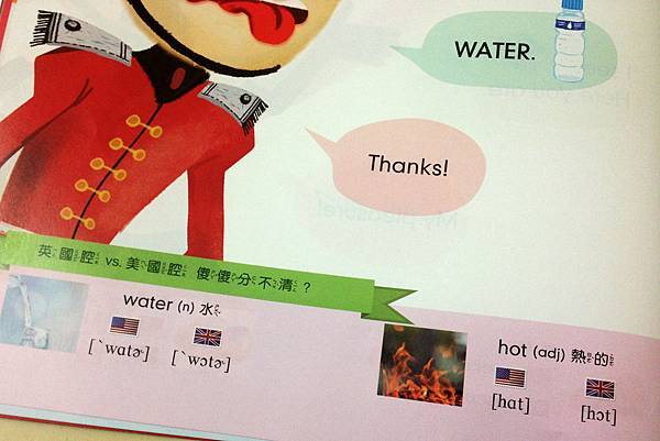 而對話的單元也相當有趣,也是我喜歡的部分,他將英國腔與美國腔的發音略作介紹,這也是一般英文學習雜誌少有的部分,不知不覺也讓我們了解到同是英文語系國家,但遇到某些文字發音不同,說法也不同。