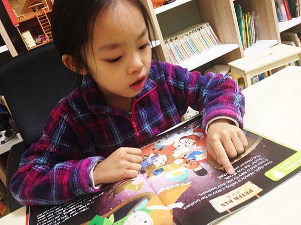 喜歡聽故事的Chloe最愛彼得潘的那一篇,老媽我看了鬆了一口氣,還好文章字數不多,不然我的頭可能會很脹。