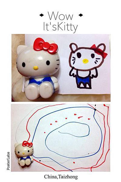 今晚兩個寶貝突發奇想想畫Hello Kitty,結果蠻有趣的。