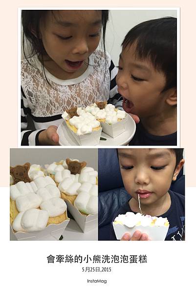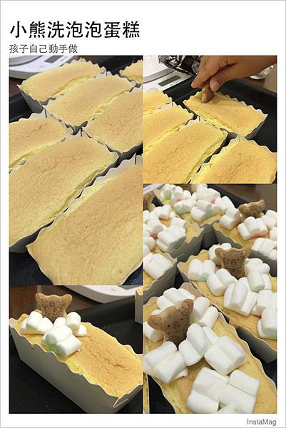 這幾天陰雨綿綿的,想想還是來跟孩子來玩點什麼著,正巧家裡有幾盒小熊餅乾及棉花糖,靈機一動不然來試試看玩個小熊洗泡泡澡蛋糕好了!
