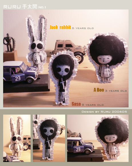布 買了2.3個月 擺一邊 顏料 買了1.2個月 擺一邊 畫筆 買了1.2個月 擺一邊 心 閒置了2.3個星期 擺一邊 終於.... RU太閒 閒到一股腦作一堆(2隻來不及上相移民到日本.掰掰!) 我想...恩~~ 可以在閒一陣子了...呼呼!