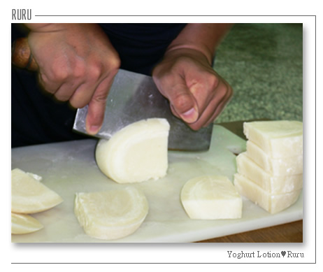 接著看著松本 先生用力的努力的使出吃奶的力氣將剛從冷凍庫拿出來的麻薯 切! 切! 切!