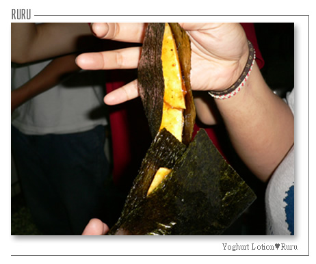 雖然樣子並不是頂好看的,但吃起來還真是不賴,很像軟QQ的醬油仙貝,外皮又有點硬硬的口感,第一次吃到道地的日本人的家常點心,嗯~~~~