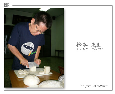 一邊告訴我們日本吃麻薯的方式,還順便誇耀他從17開始就做麻薯的了不起事蹟...看著看著~我還是覺得它像饅頭...