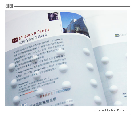 在銀座中央通翻閱半個世紀的松屋百貨,2001年由無印良品設計總監"原研哉",進行更新設計規劃,白色、玻璃、牆上的凸點等紋理質感,以現代創新不特的設計手法,使了老店成功翻新,刺激更多消費者的目光,也重新塑造了百貨老店時尚流行的新形象。