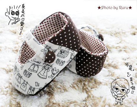 斷斷續續,終於完成小咪的第二雙鞋 玩手縫是種樂趣,尤其縫小BB的東西 完成時間很快,很容易看到成果 成敗一下子見分明 終於秤小咪在睡夢中完成了小咪的第二雙鞋 這次不用綁緞帶的方式,改縫個小包扣 還OK過的去,雖然有點小歪歪.....哈!! 咪~~ 娘盡力囉,下次在改進!!