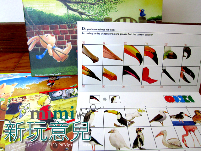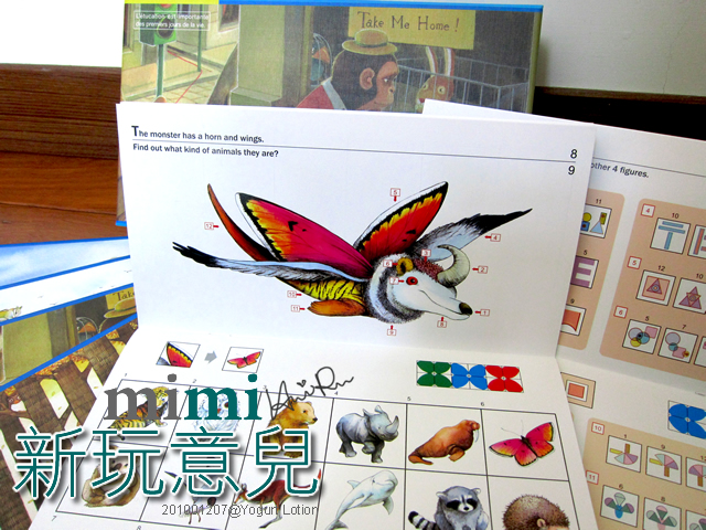 他的插畫很多元,也很有趣,當然有些單元也不是這麼簡單,上次跟mi玩一個推理邏輯的單元,原來裡面是很多童話故事的推理,一邊做一邊心想,挖~還好大部分的故事我都知道,也念給mimi聽過,所以做起來格外有成就感。