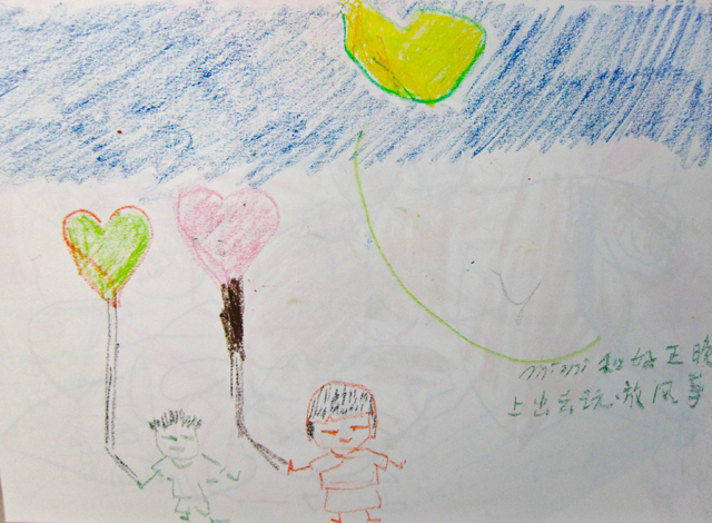這個是mi畫的媽媽,她說媽媽長頭髮綁起來,還帶著眼鏡做在椅子上