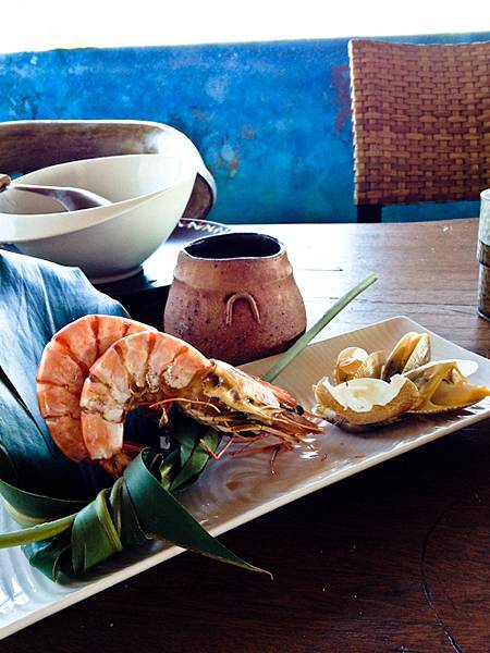 清爽的海風,晴朗的天空,還有幾個可愛的原住民孩子奔跑著,隨後陸續進了用餐的地方,認真地細細排好碗筷與特有的陶杯。