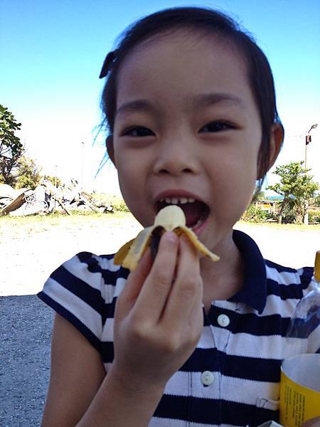 休息了一會兒,拿出在光復鄉路旁買的雞蛋香蕉,一邊休息一邊吃了起來