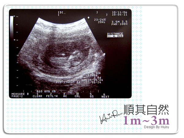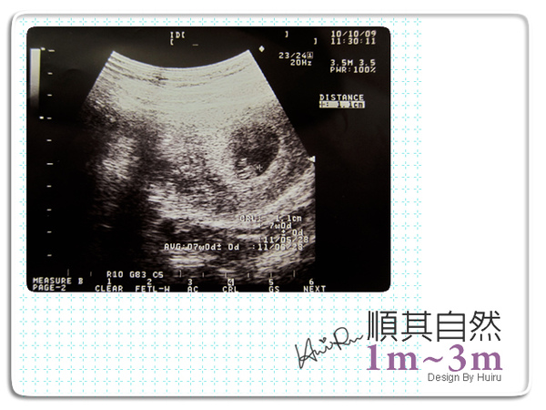 mi跟爸比跟我一起去產檢,哇~bb出現了咧,這次是1.1cm,我問了醫師,這次怎比上次小,陳醫師說,因為上次只是胚胎,現在胎兒形成了這是裡面的小bb,喔~原來如此,醫師看到mi跟爸比在場,便放大了bb的心跳聲給他們聽,只見mi一臉狐疑,到了晚上mi問我,馬麻~為什麼小寶寶會有碰碰~碰碰的聲音,我說,那是小寶寶的心跳聲阿,妳也有,說完便抓起mi的手摸摸自己的心跳,這是心跳知道了嗎。