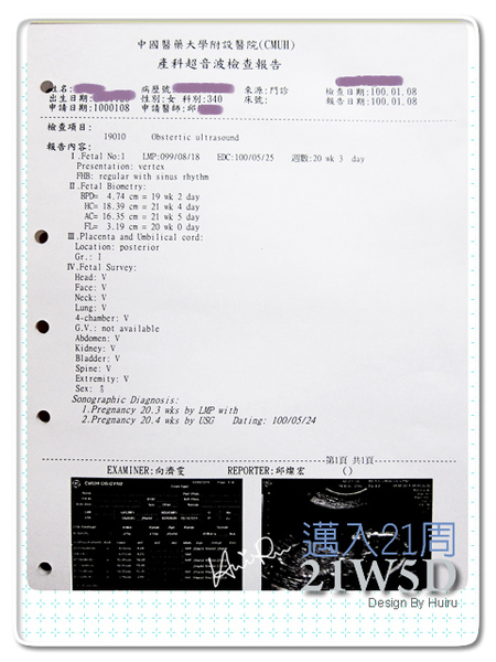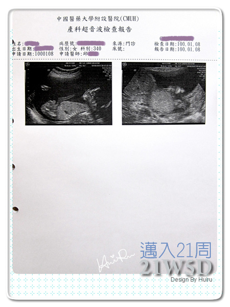 這次的超音波跟之前很不一樣,是由另外的超音波師來負責檢查,每個環節都照得非常地仔細,過程中我也沒問她太多的問題,直到過了幾分鐘後,她開口跟我解釋DD的狀況,包括臍帶、羊水、DD的心臟、胃、脊椎、再次確認性別、五官....等。