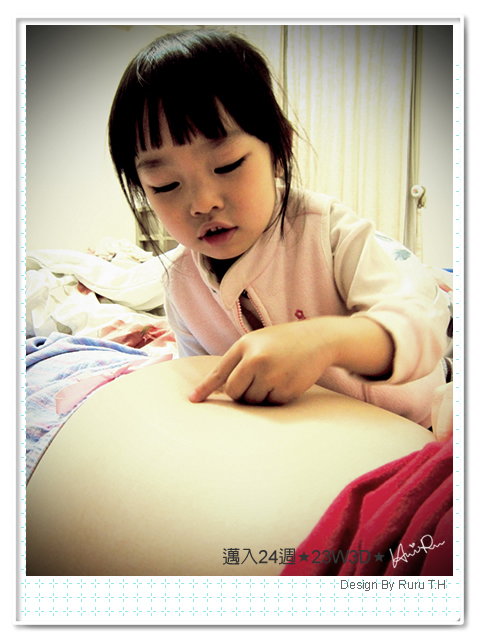 邱醫師:「恩~妳肚子沒什麼大,可是寶寶週數以現在量起來,有大快一週了,恩~~好....這是心跳、羊水正常、這是脊椎.....,現在妳應該會感受到比較明顯的胎動了吧!」