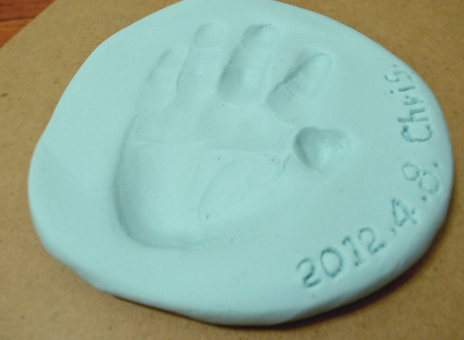 把調皮搗蛋的小孩抓過來,將他的手或腳對準在超輕土上,給他有點用力地按下企!!!!!記住每一隻手指頭跟手掌都要注意喔!