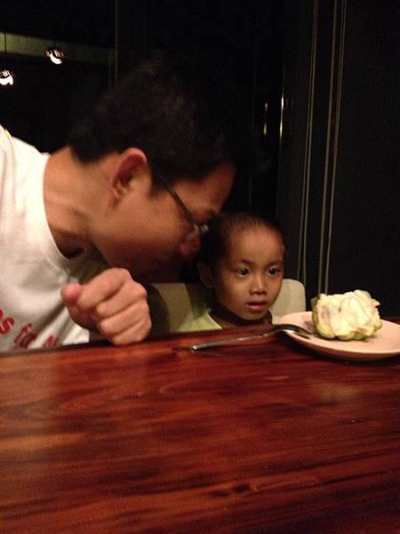 後來老公跟我一直很掛心這個孩子,希望他一切平安,今年再次遇到他,我們都很開心,只是可能他忘了我們,所以爸爸便使出哄小孩的招數,硬把他抓了過來,然後說要跟他比賽吃釋迦,沒想到就這樣打通了彼此的心門,小孩們一起比賽、一起吃個精光。