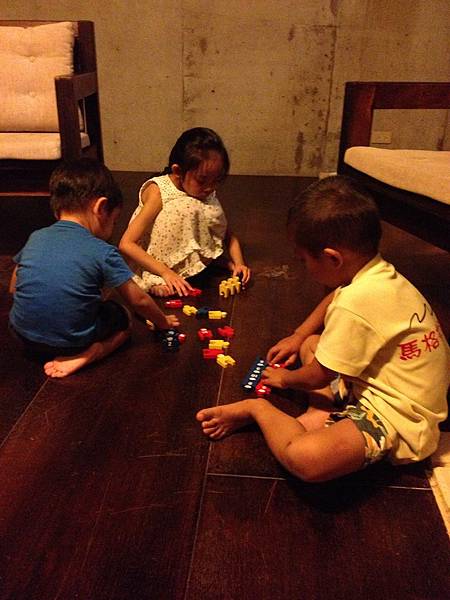 晚餐結束後,媽媽我拿出事先準備好的數字積木,讓姊姊邀請原住民弟弟一起玩,小孩的世界就是不一樣,很快地融入了彼此,玩得很專注,也沒有爭吵的聲音,原本還小擔心Chris會有暴衝的反應,事後證明是媽媽我多想了,弟弟很喜歡這位小哥哥呢,在玩耍的過程中,沒有聽到任何一點爭吵,爸媽我們也開心地在一旁談天說地。