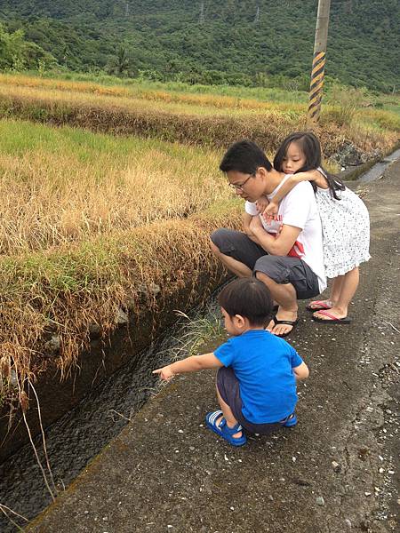 沿路的梯田,長滿了稻穗,兩旁的小溪流水聲很快的就引起孩子們的興趣。