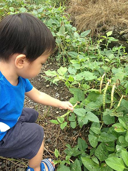 道路的兩旁還種著豆子,不同於我們看到的現品,掛在樹上的樣子,對孩子更具吸引力,我們也試著讓好正弟弟觸摸看看。