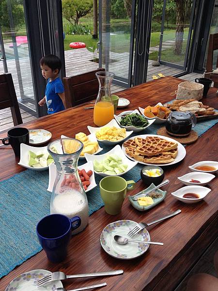 早餐的菜色大約是這樣,只不過現在這個擺盤方式,是民宿工作人員的早餐,去年我們也是如此,但今年改成放在一旁,由人客自取。