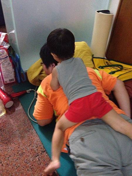 爸爸拿後速共啪阿朗(Chris小名),還要在這裡(指他罰站的地方)罰站啦!