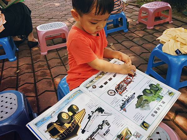 對於喜愛的車子真的是情有獨鍾,只要是跟車子有關的事物、書籍,就很容易可以讓他安靜下來。