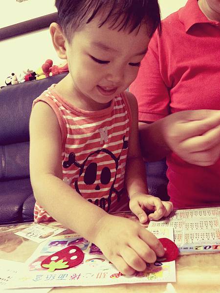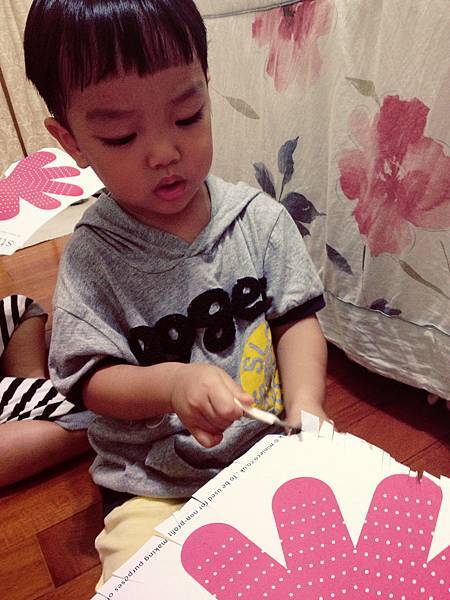 其實勞作的過程中,兩歲的弟弟還無法全程參與到底,總是有一搭沒一搭的,但這不勉強他,讓他有機會參與到這就是媽媽的用意了。