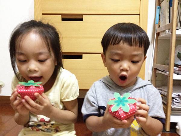 讓姊姊處理較細部的地方,將適合弟弟做的部分交給他時,要很驚訝地說,挖賽!這個草莓好可愛喔!!弟弟一定很想做吧~